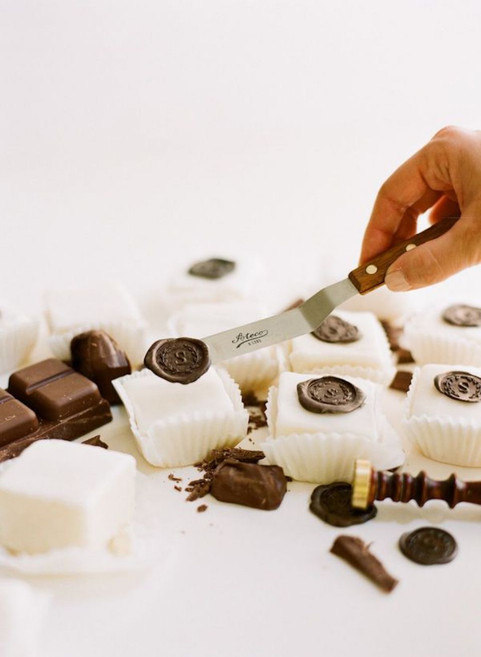 Çikolata mührü basmak için mühürün son derece soğuk olması gereklidir, aksi taktirde çikolata mühüre yapışacaktır.